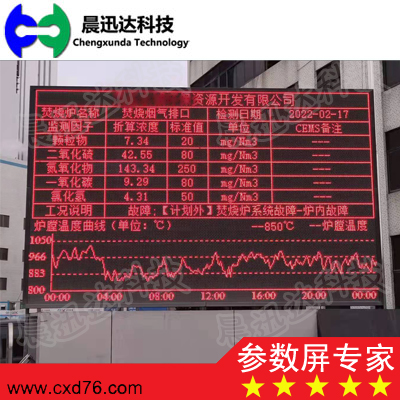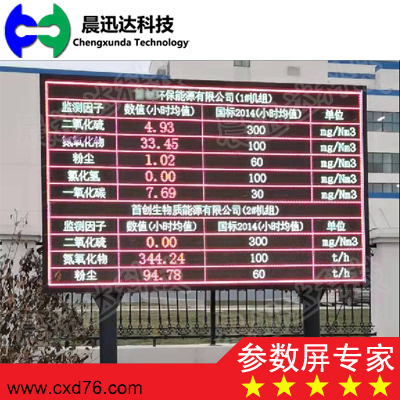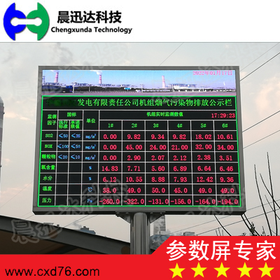 公司設計生產的工業(yè)參數顯示器(也稱:LED大屏、LED參數屏、工業(yè)參數屏、工業(yè)大屏、工業(yè)參數顯示屏、工業(yè)參數大屏幕,工業(yè)參數顯示板,工業(yè)參數看板,工業(yè)參數電子屏,上件參數看板、環(huán)保參數看板,環(huán)保信息顯示屏、連鑄大屏、連鑄LED屏、廢鋼參數屏、電力參數屏、中控參數屏、電力參數LED大屏)用于控制室、車間、監(jiān)控室、戶外環(huán)保參數展示等場合,用于顯示電量、功率、頻率、溫度、濕度、壓力、液位、流量、轉速等各種工業(yè)參數的瞬時量、累計量。顯示采用大型數碼管、單雙色點陣LED屏、或全彩LED屏,以及各種尺寸工業(yè)LCD屏的方式,顯示方式靈活、清晰、醒目、直觀、性能穩(wěn)定可靠、功耗低、壽命長。